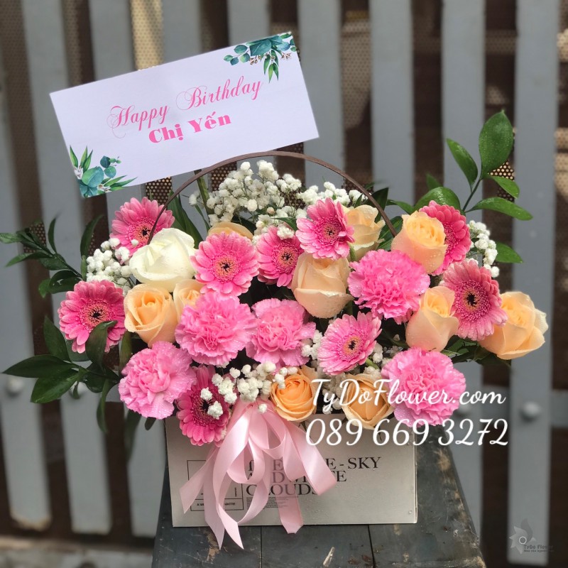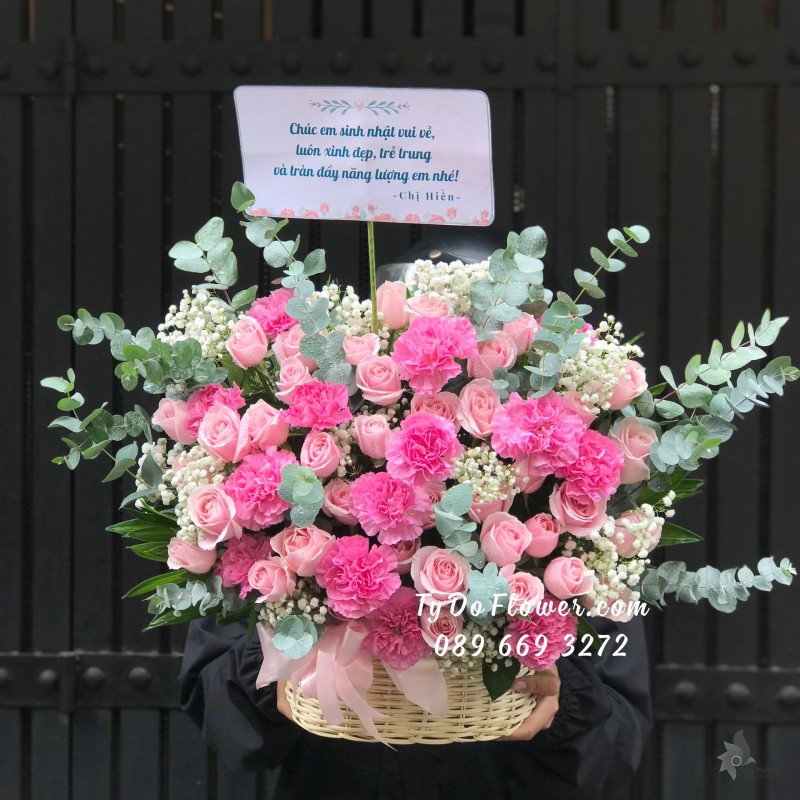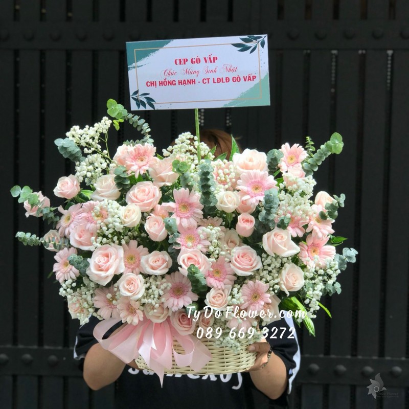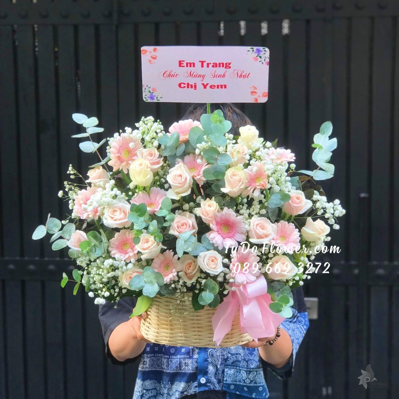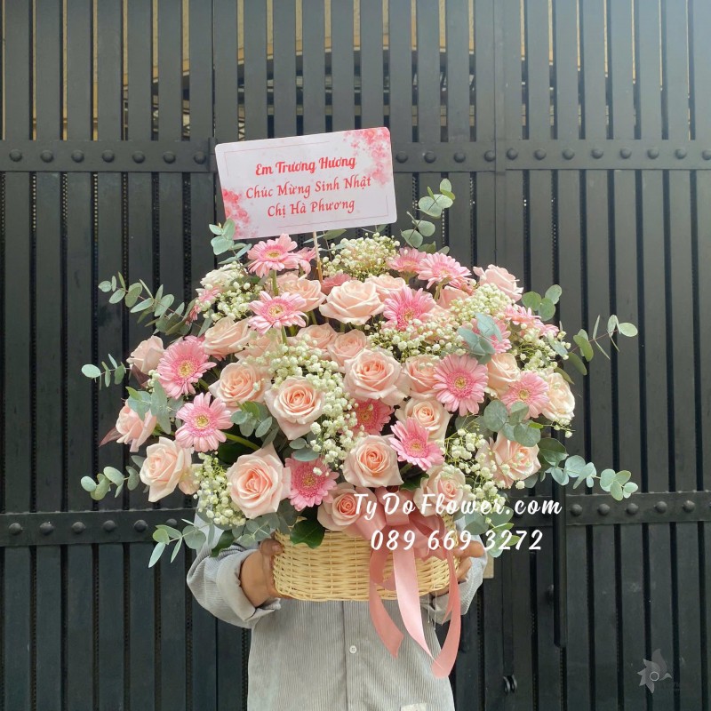 GIỎ HOA HỒNG SEN mix HỒNG KEM Hoa Chúc Mừng Sinh Nhật