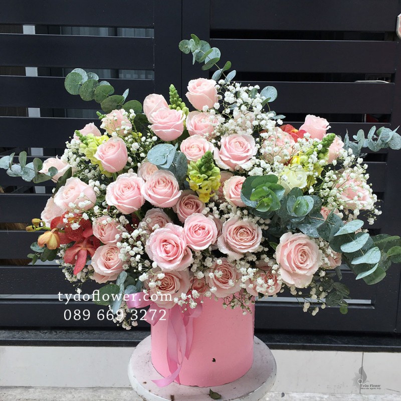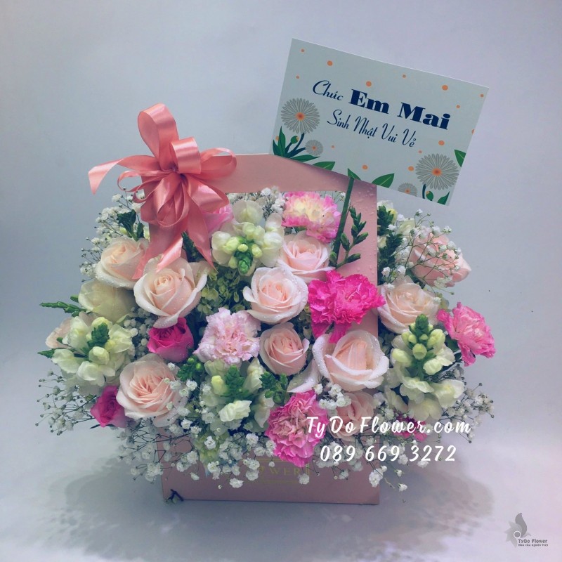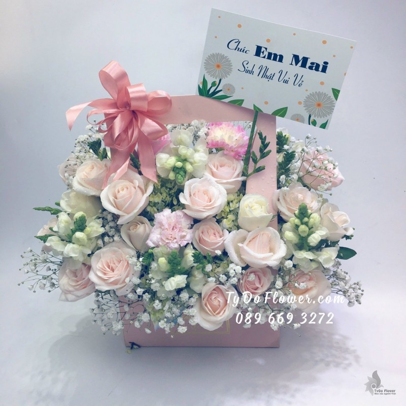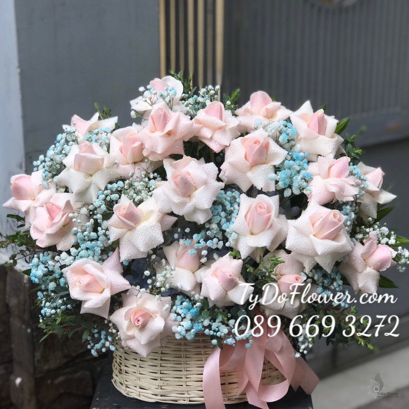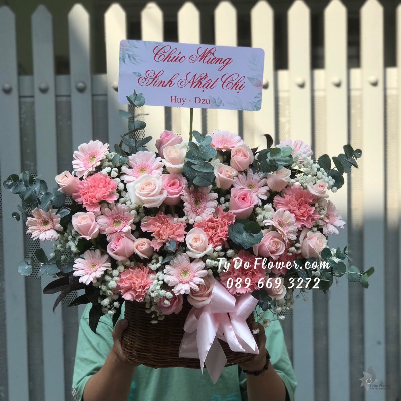 GIỎ HOA HỒNG SEN mix HỒNG KEM Hoa Chúc Mừng Sinh Nhật