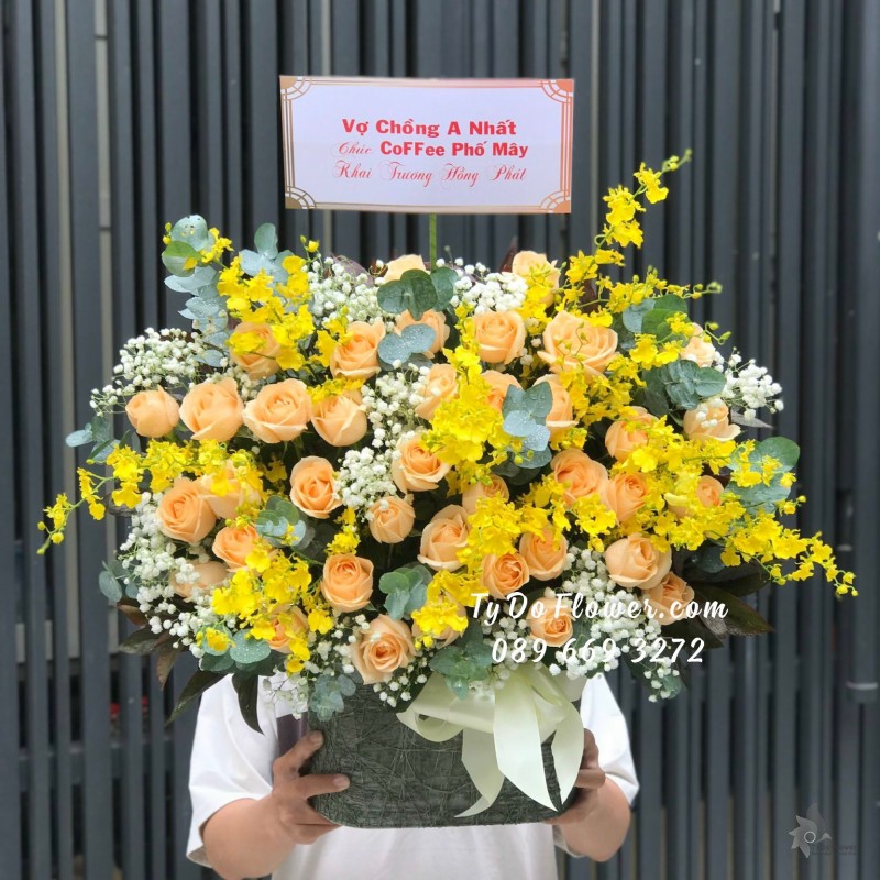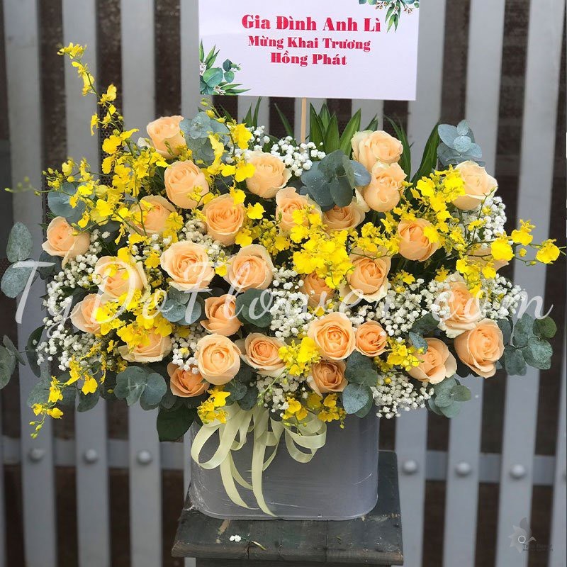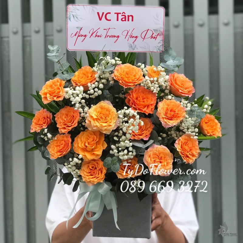 GIỎ HOA HỒNG CAM TRỨNG Hoa Chúc Mừng Khai Trương