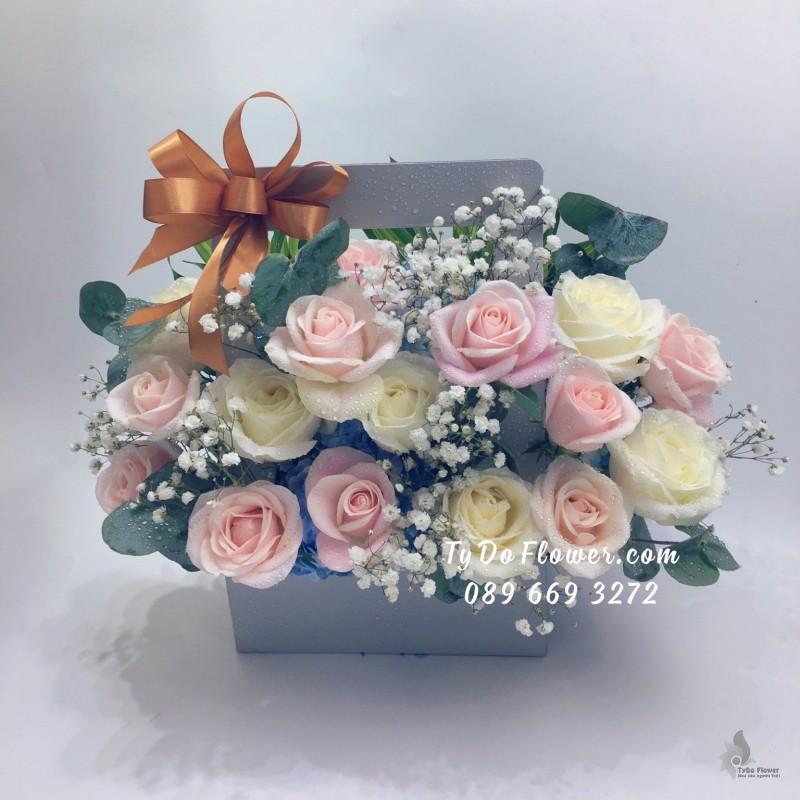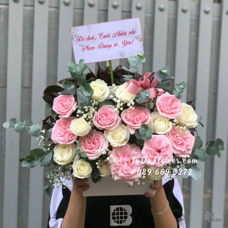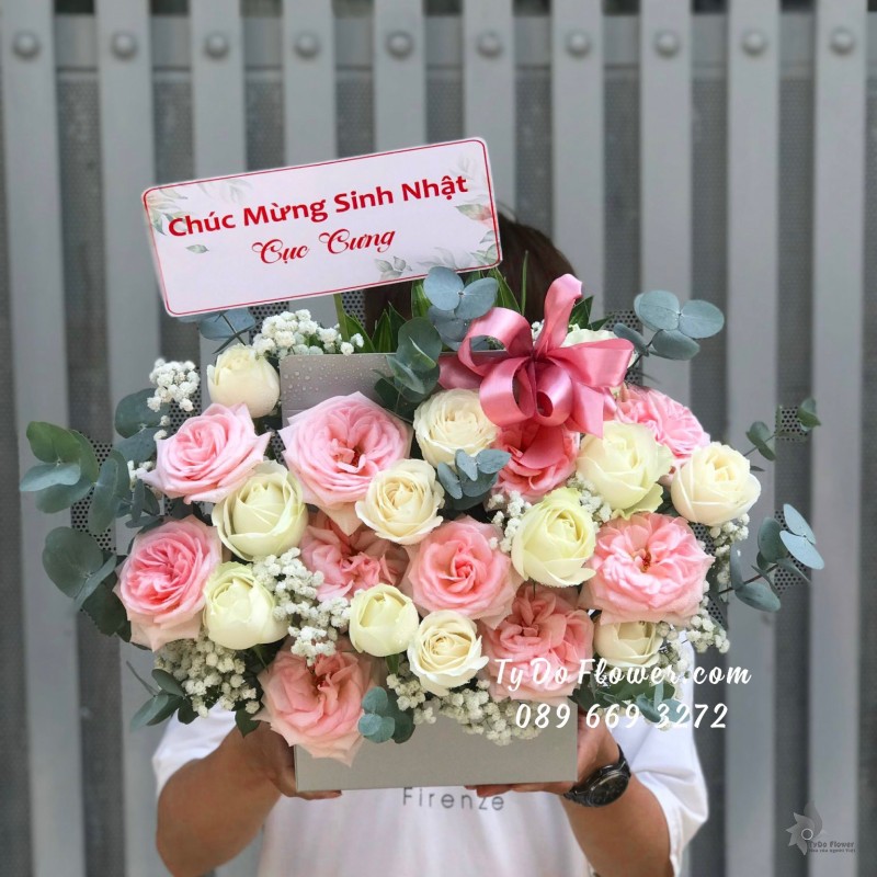 GIỎ HOA HỒNG OHARA PINK ROSES mix HOA HỒNG TRẮNG Hoa Chúc Mừng Sinh Nhật