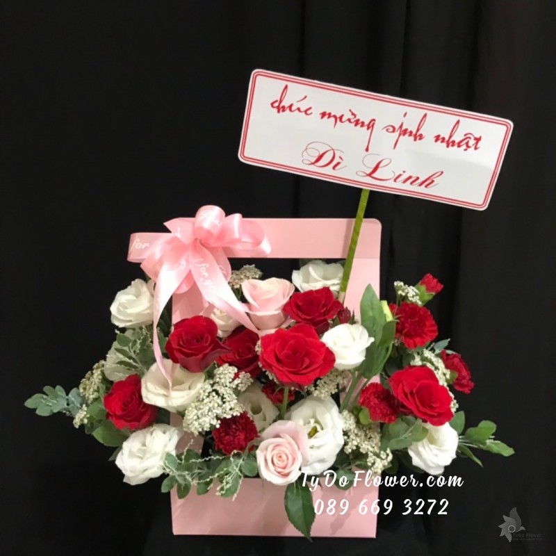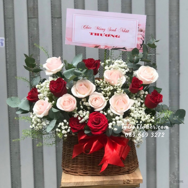 GIỎ HOA HỒNG ĐỎ mix HOA HỒNG KEM Hoa Chúc Mừng Sinh Nhật