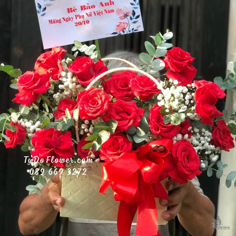 GIỎ HOA HỒNG ĐỎ Hoa Chúc Mừng