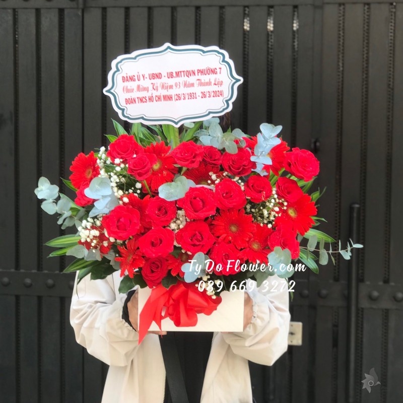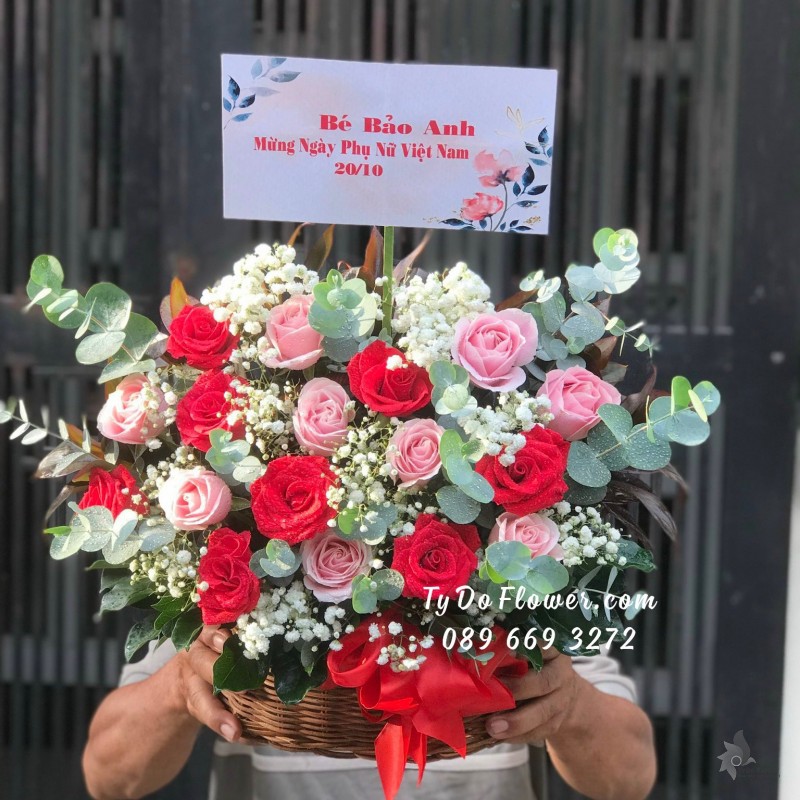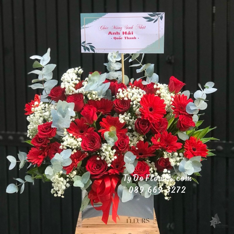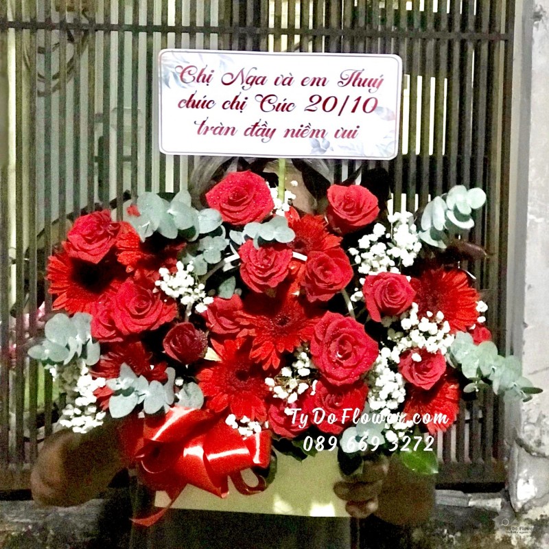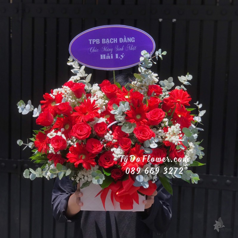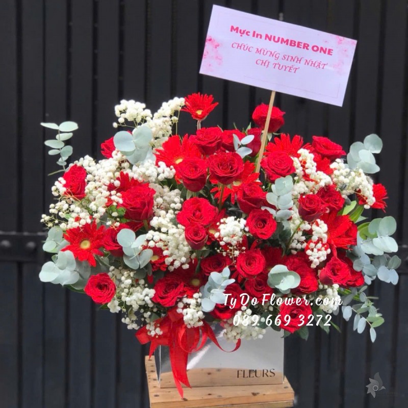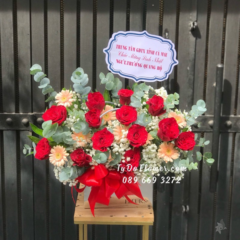 GIỎ HOA HỒNG ĐỎ HOA CHÚC MỪNG