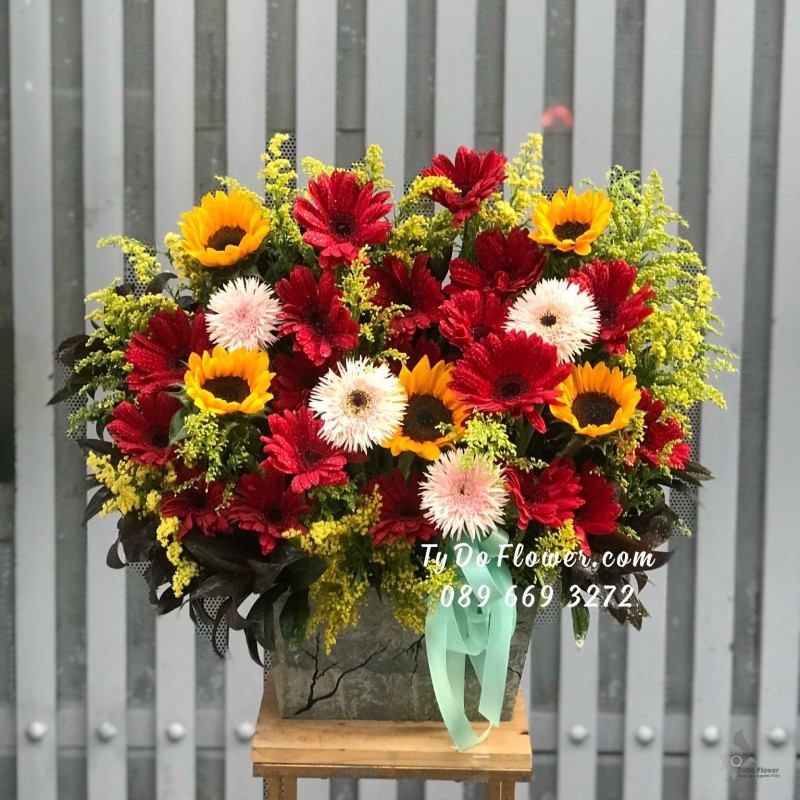 GIỎ HOA HƯỚNG DƯƠNG HOA CHÚC MỪNG