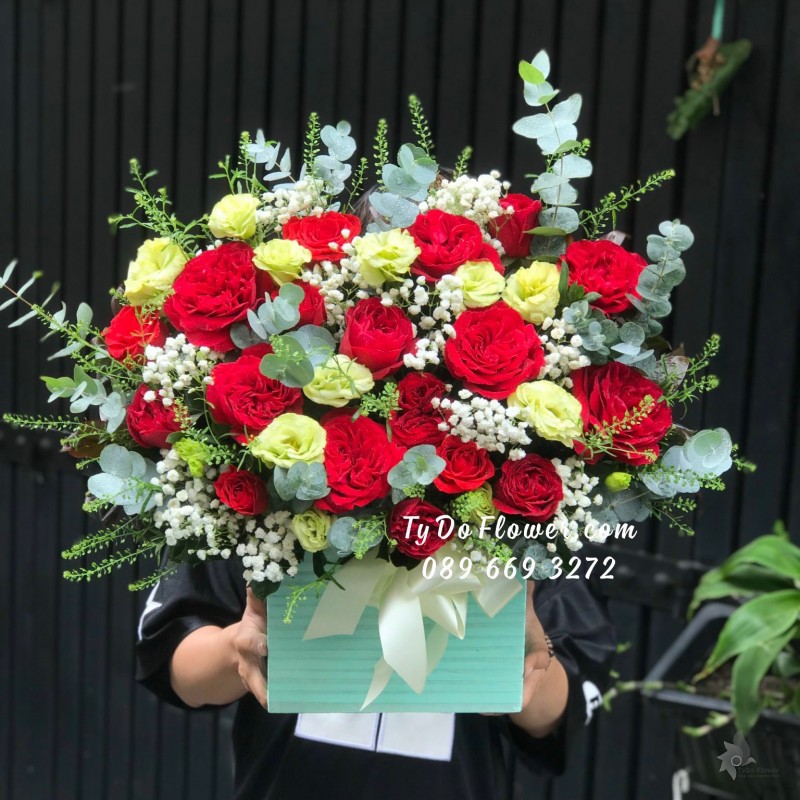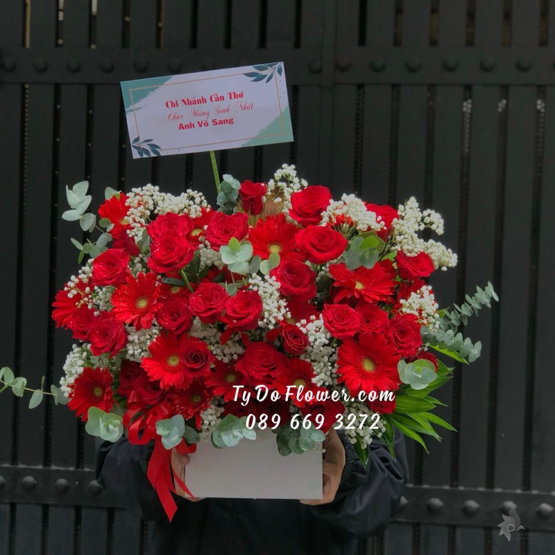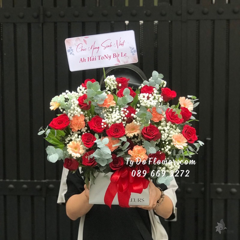 GIỎ HOA HỒNG ĐỎ OHARA RED ROSES mix hoa phụ màu hồng cam trắng Hoa Chúc Mừng Sinh Nhật
