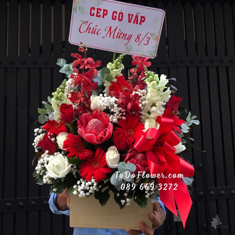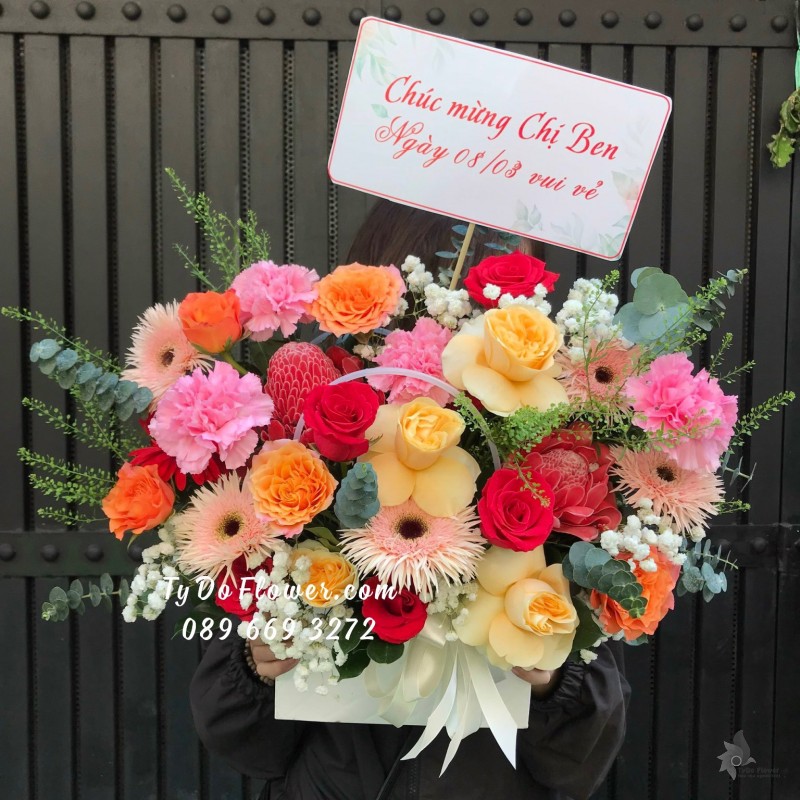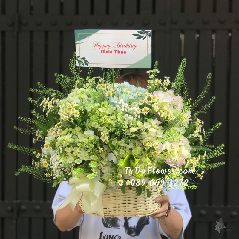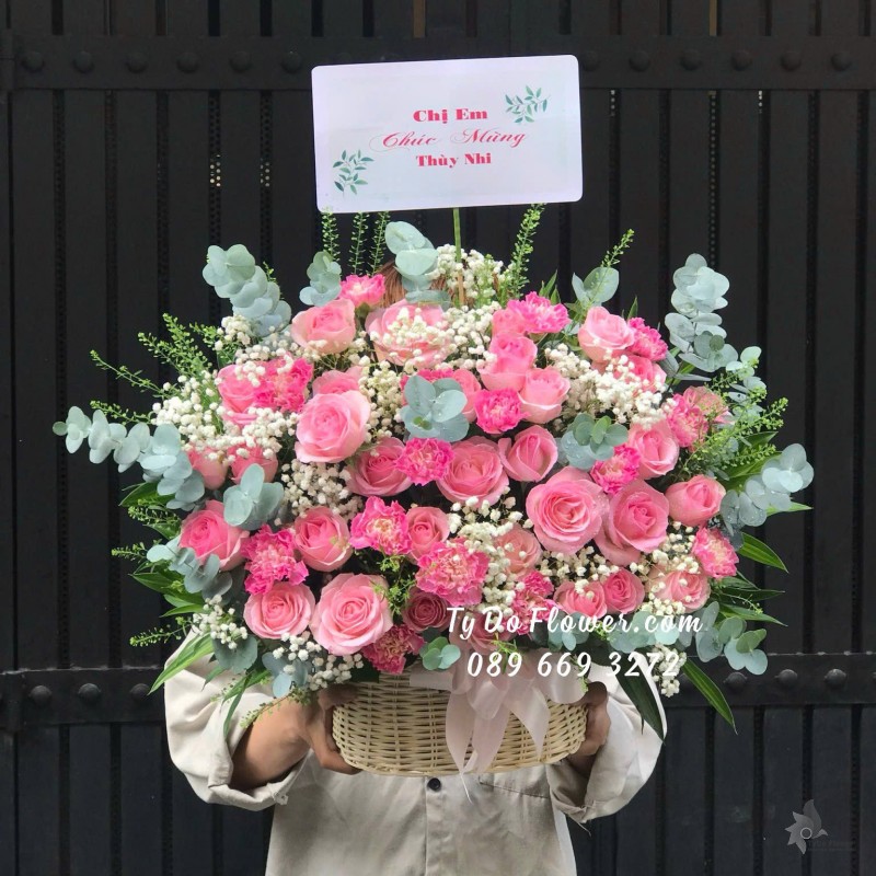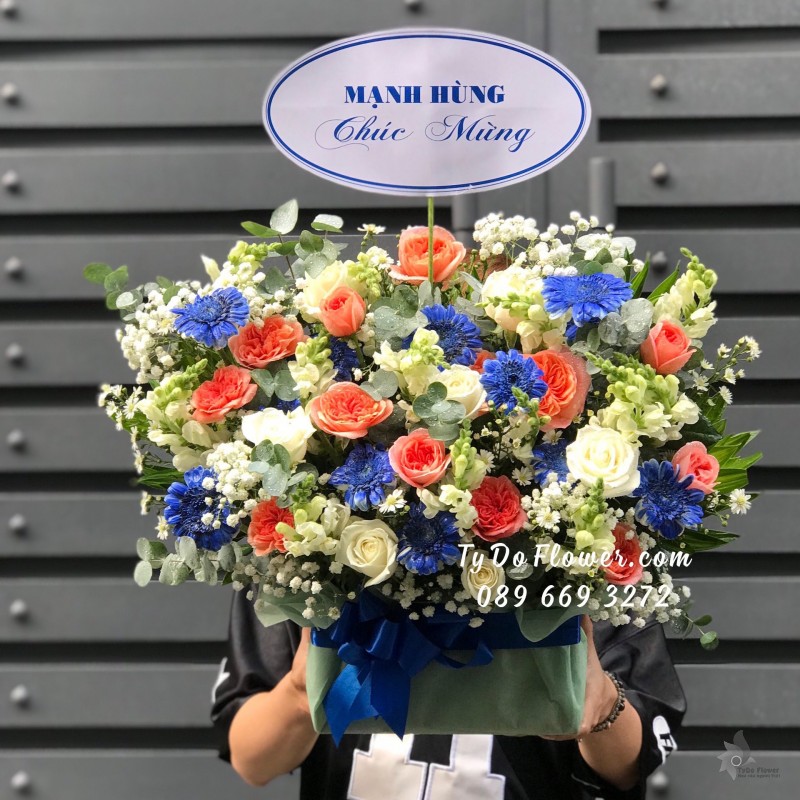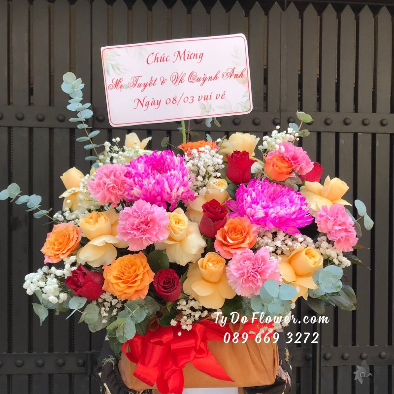 GIỎ HOA CẨM TÚ CẦU HOA CHÚC MỪNG